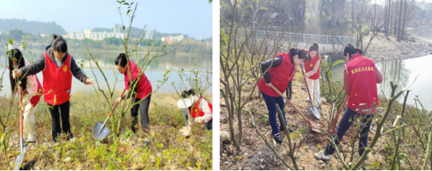 在园林工作人员的精心引导下,志愿者们细心栽种下一棵棵寓意纳福招吉与福寿吉祥的“福橘”。她们挥锹铲土、培土围堰、提桶浇水,每一道工序都做得一丝不苟,每一滴汗水都凝聚着对未来的美好憧憬。经过大家的辛勤劳动,一株株福桔树苗错落有致,亭亭玉立,呈现出一片勃勃生机。
