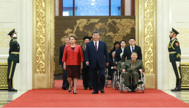习近平指出,75年来,世界上有很多与中国人民志同道合、风雨同舟的老朋友、好朋友,今天被授予“友谊勋章”的迪尔玛·罗塞芙女士就是其中的杰出代表。中国人民永远不会忘记那些为中国发展、增进中国人民同各国人民友谊作出突出贡献的国际友人。中国人民愿携手世界各国人民,维护世界和平,促进共同发展,推动构建人类命运共同体,开创人类更加美好的未来。