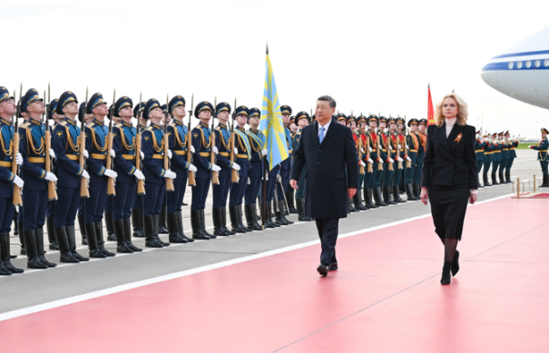 当地时间5月7日晚,国家主席习近平乘专机抵达莫斯科,应俄罗斯总统普京邀请,对俄罗斯进行国事访问并出席纪念苏联伟大卫国战争胜利80周年庆典。