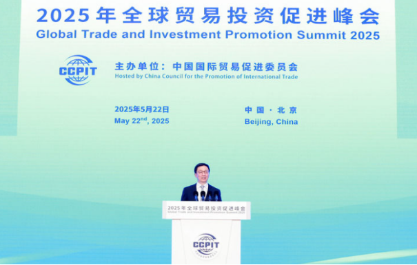 5月22日,国家副主席韩正在北京出席2025年全球贸易投资促进峰会开幕式并致辞。