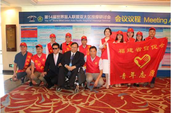 “第十四届世界盲人联盟亚太区按摩研讨会”于2018年5月7日-5月11日在福州举行。省贸促会青年志愿者服务队主动与省残联有关单位联系,为会议提供志愿者服务。省贸促会会长陈震亲率服务队赴省残联进行前期工作对接,并亲临会议现场指导志愿者服务活动。