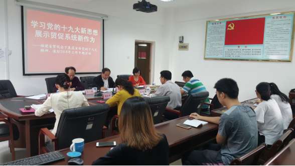 11月17日上午,陈扬副会长一行到漳州市贸促会开展宣讲和调研活动,漳州市贸促会邱亚明会长、杨丽珲副会长和部室负责人、干部职工10多人参加了会议。陈扬副会长首先传达了11月16日上午刚刚召开的福建省委十届四次全会上于伟国书记的主题报告,一是要深刻领会,把思想和行动统一到党的十九大精神上来;二是要以习近平新时代中国特色社会主义思想为指导,奋力谱写新时代福建发展新篇章;三是要全面从严治党,夺取反腐败斗争伟大胜利。紧接着,结合省委十届四次会议精神,与支会共同谋划2018年贸促工作。