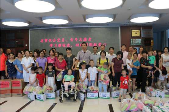 为进一步深入开展“学习廖俊波,做合格党员”主题实践活动,教育引导党员、干部以廖俊波同志为榜样,学习他心系群众,把百姓当亲人的为民情怀,为民多办实事、多做好事,以实际行动,践行为人民服务的根本宗旨,2017年9月12日,省贸促会组织机关党员、团员,在党组书记、会长陈震,党组成员、副会长傅健的率领下,赴省残疾人康复教育中心,开展“学习廖俊波,助残帮困献爱心”活动,看望慰问特教老师,为残疾儿童献爱心。