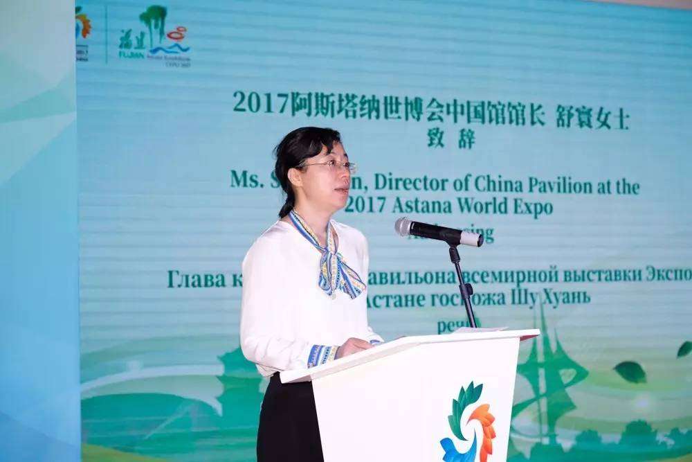 舒寰馆长在致辞中指出,阿斯塔纳世博会围绕“未来的能源”这一主题,为各国展示新能源开发利用成果、探寻能源合作方略、推动可持续发展提供了重要平台。福建省地处中国东南沿海,具有民营经济发达、海洋经济基础良好等明显优势。特别是“21世纪海上丝绸之路”倡议提出以来,福建省积极建设起“21世纪海上丝绸之路”核心区。此次福建日活动将组织经贸洽谈、展览展示和文艺演出等活动,内容丰富多彩。她相信,借助此次世博平台,福建省将与哈萨克斯坦及各国建立更紧密的经贸关系,同时也让各国人民感受到独具特色的“八闽文化”。