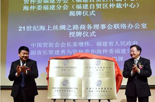 中国贸促会会长姜增伟、福建省人民政府副省长梁建勇出席揭牌仪式,并共同为贸仲委福建分会、贸仲委福建自贸区仲裁中心以及海仲委福建分会、海仲委福建自贸区仲裁中心揭牌。中国贸促会副会长尹宗华、福建省贸促会会长张秋、贸仲委副主任兼秘书长于健龙、国务院法制办中国仲裁协会筹备领导小组副组长卢云华等国家和地方有关部门领导出席揭牌仪式。两岸经贸界、仲裁界近200名代表到场共同见证了这一重要历史时刻。