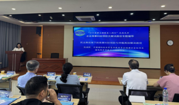 2025年7月11日上午,“涉外商事法律服务八闽行”——民法典视角下的商事纠纷预防与仲裁高效解决路径专题培训活动在龙岩市成功举办。此次活动由福建省贸促会主办,龙岩市贸促会、龙岩市国际商会共同承办,旨在帮助企业深入理解《民法典》在商事领域的应用,引导企业采用多元纠纷化解方式高效解决矛盾冲突,维护企业合法权益。龙岩市贸促系统代表及龙岩国际商会的近百家理事单位、监事单位有关负责人参训。