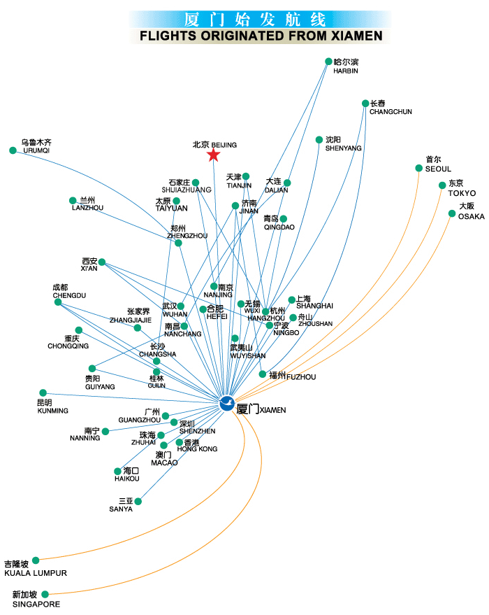 厦航始发航线网络